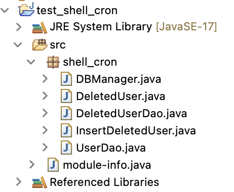 ・InsertDeletedUser → 実行を行うMainクラス( ユーザ情報を取得し、削除済みユーザーテーブルへinsert )