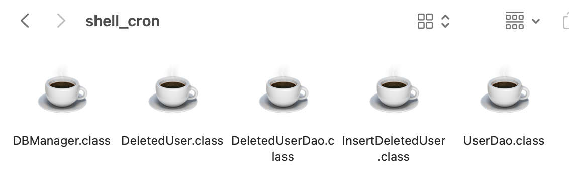 保存したいディレクトリに移動してから、コンパイル後のクラスを格納する「deleted_user_compile」ディレクトリを作成する。